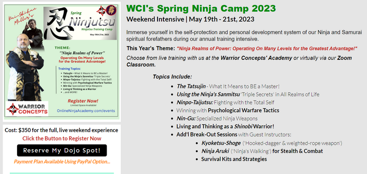 Of course, if something changed and you can at least make it for the virtual option, here's the link to make that happen: https://onlineninjaacademy.com/events/
