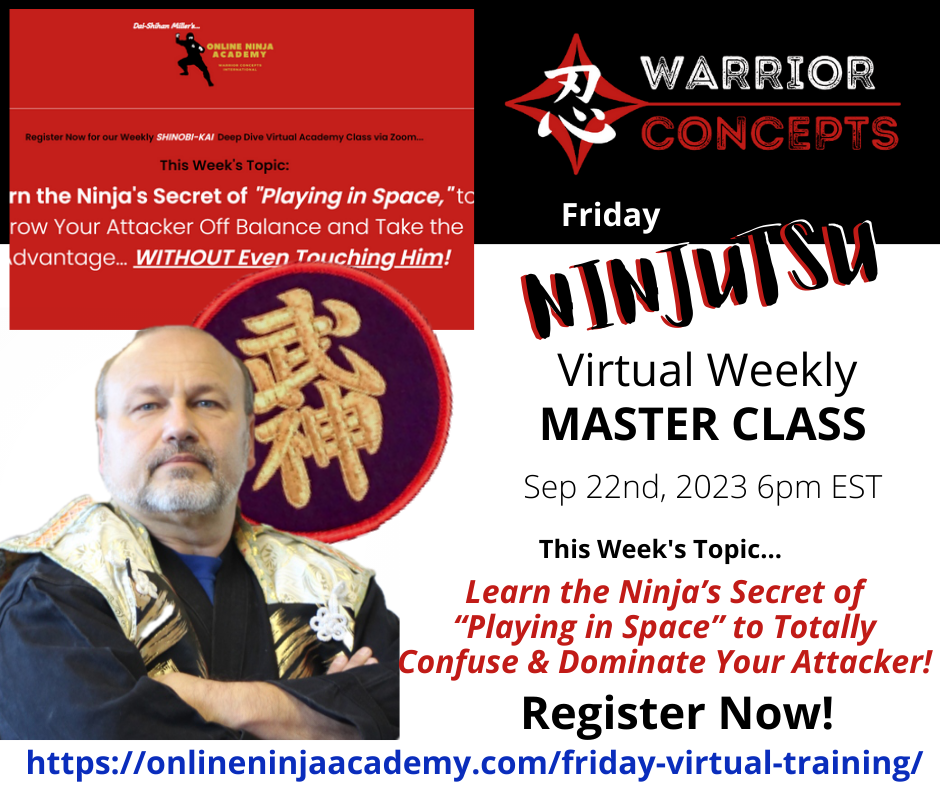 There's still time to register for this week's virtual Ninjutsu self-defense class via Zoom which will be based on this lesson.