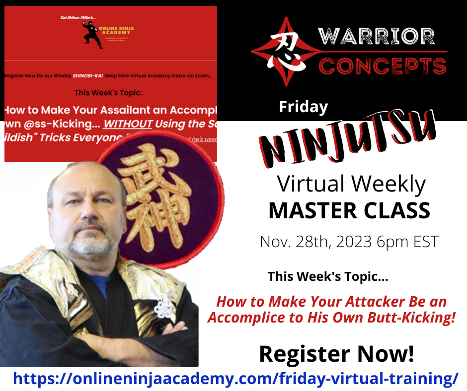 PSS - ***Why jump around and peck out your training with one-off classes and minimal or no help from a teacher? You're not a chicken, you're a WARRIOR-PROTECTOR (well, I hope so anyway)! Get BOTH virtual classes every week, help with your training, and over $1,300 in bonuses, when you join my Ninpo-Masterclass for serious students looking for more than just "f.r.e.e. stuff" on Youtube, or the same rehashed techniques everyone else is teaching! Click here to learn more and join beginners AND advanced students alike in a group of dedicated, serious, and committed students seeking Mastery, not just mediocrity and "meh"!