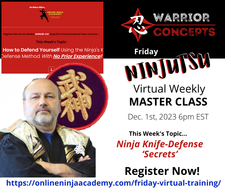 There's still time to register for tomorrow's virtual Ninjutsu self-defense class via Zoom which will be based on this lesson. During this class you're going to learn techniques, tactics, and strategies for going beyond what everyone else is doing, to having a level of power, confidence, and control that makes most black belts look like beginners. That's not hype... that's fact!