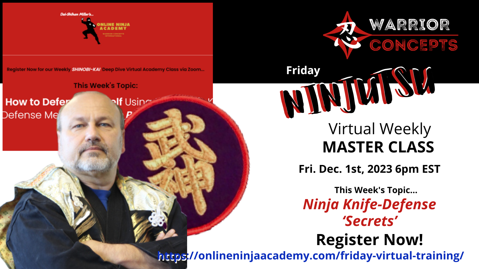 There's still time to register for this week's virtual Ninjutsu self-defense class via Zoom that I'm doing from the dojo, tomorrow at 6pm eastern, which will be based on this lesson.