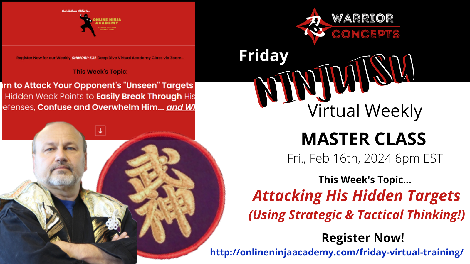 Here's the link to register for week's virtual Ninjutsu class via Zoom, tonight at 6pm eastern where we'll be working on techniques that do exactly that, and giving you an extreme advantage over everyone else!