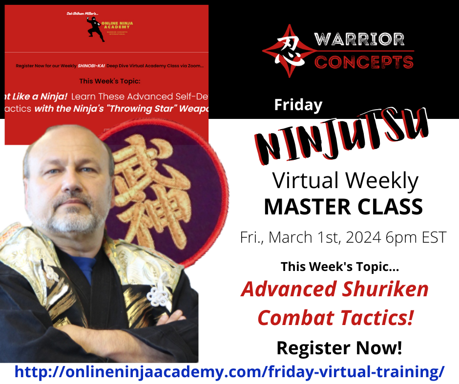 PSS - ***Why jump around and peck out your training with one-off classes and minimal or no help from a teacher? You're not a chicken, you're a WARRIOR-PROTECTOR (well, I hope so anyway)! Get BOTH virtual classes every week, feedback and help with your training, the ability to ask and get your questions answered, and over $1,300 in bonuses, when you join my Ninpo-Masterclass for serious students looking for more than just "f.r.e.e. stuff" on Youtube, or the same rehashed techniques everyone else is teaching! Click here to learn more and join beginners AND advanced students alike in a group of dedicated, serious, and committed students seeking Mastery, not just mediocrity and "meh"!