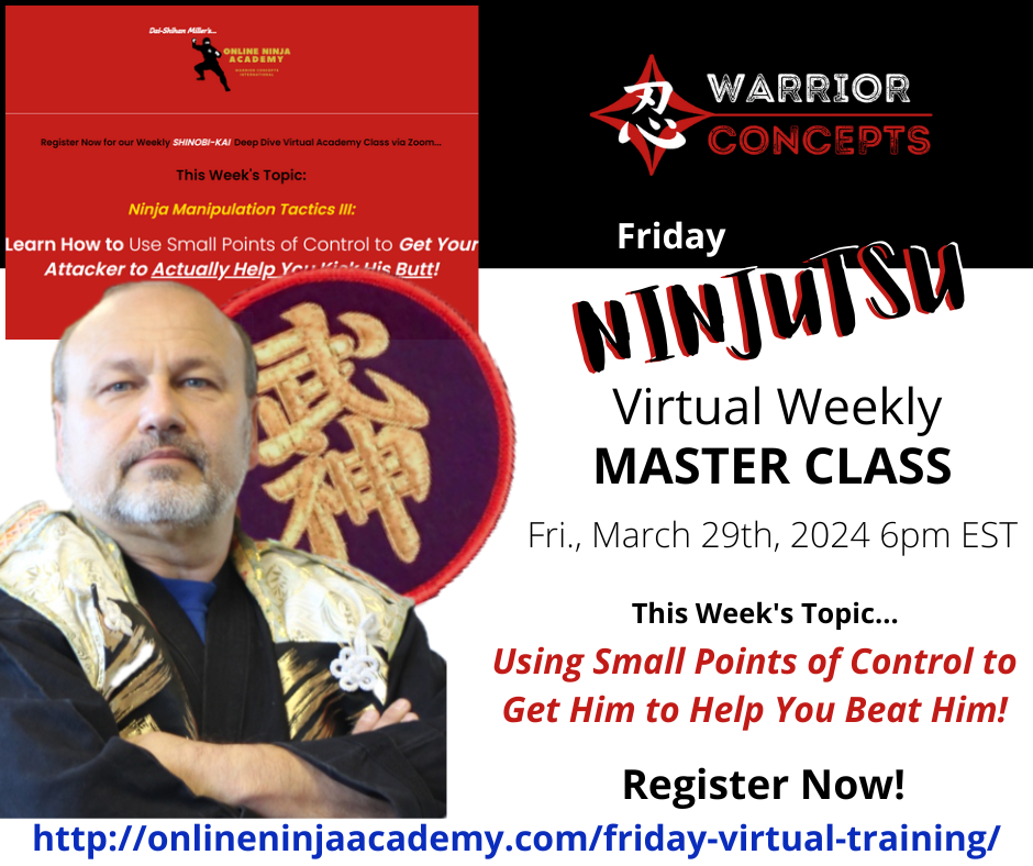 PSS - ***Why jump around and peck out your training with one-off classes and minimal or no help from a teacher? You're not a chicken, you're a WARRIOR-PROTECTOR (well, I hope so anyway)! Get BOTH virtual classes every week, feedback and help with your training, the ability to ask and get your questions answered, and over $1,300 in bonuses, when you join my Ninpo-Masterclass for serious students looking for more than just "f.r.e.e. stuff" on Youtube, or the same rehashed techniques everyone else is teaching! Click here to learn more and join beginners AND advanced students alike in a group of dedicated, serious, and committed students seeking Mastery, not just mediocrity and "meh"!