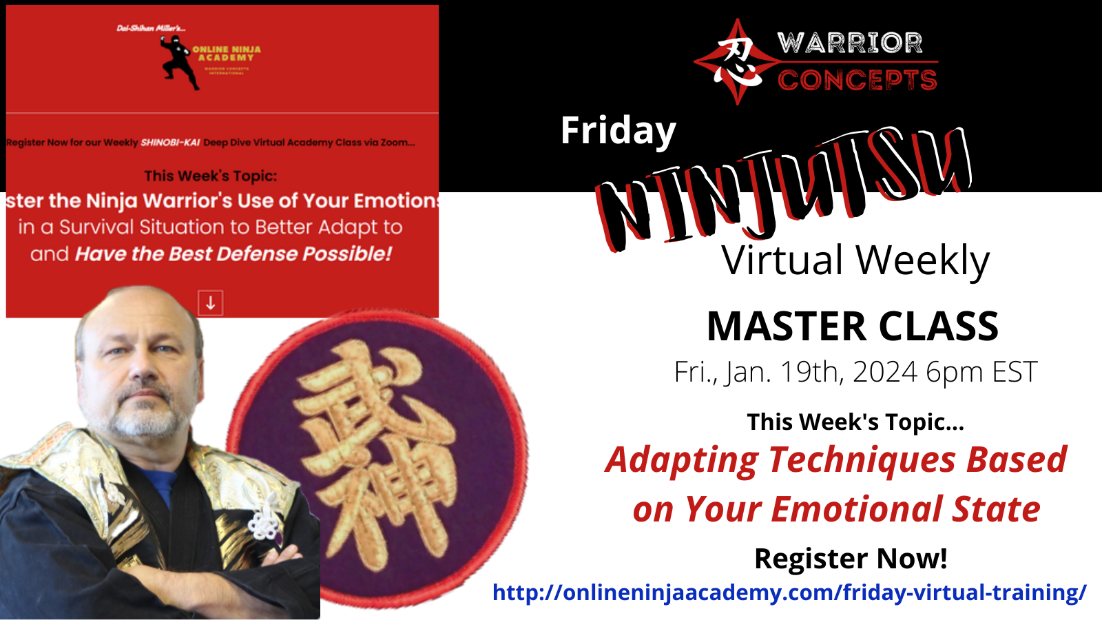 There's still time to register for this week's virtual Ninjutsu self-defense class via Zoom that I'm doing from the dojo, tonight at 6pm eastern, which will be based on this exact lesson.