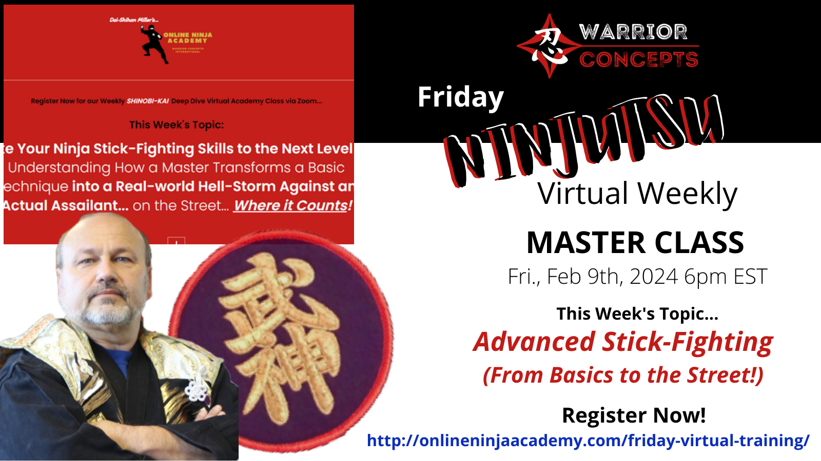 Here's the link to register for week's virtual Ninjutsu class via Zoom, tonight at 6pm eastern where I'll be covering these strikes, as well as how to transform them from basic models into the street-ready skill sets you'll need against a real-world attacker looking to beat, break or kill you! that I'm doing from the dojo, which will be based on this exact lesson.