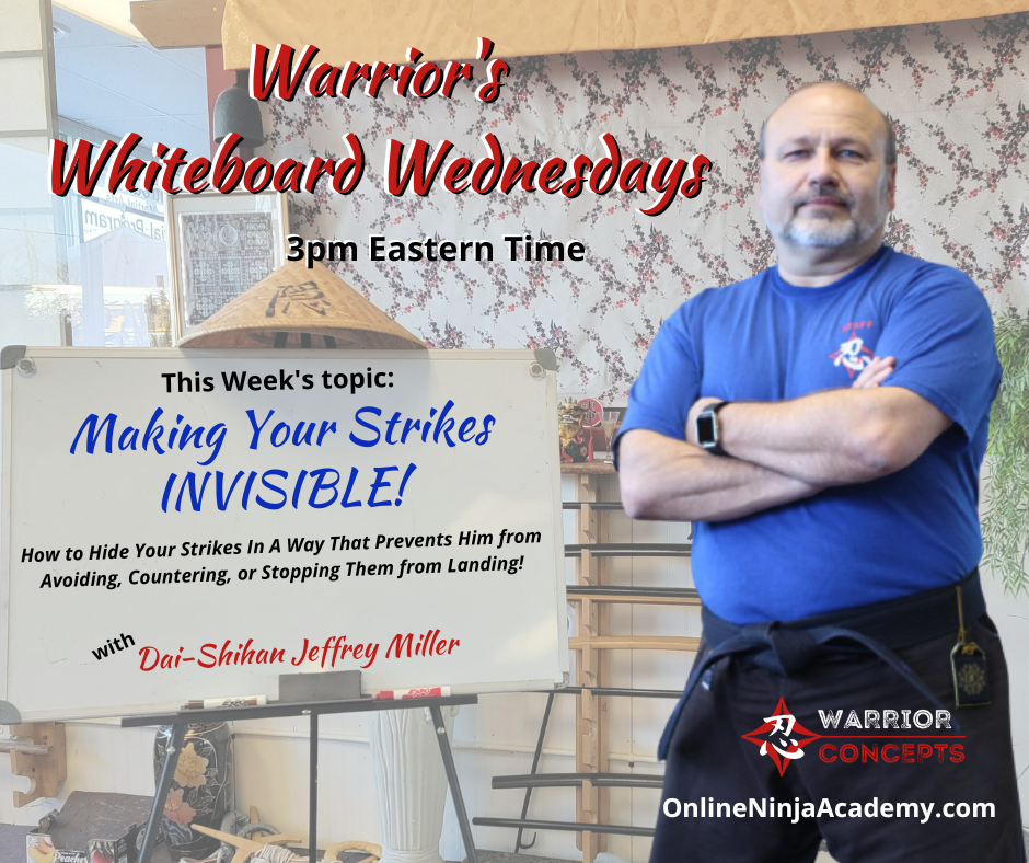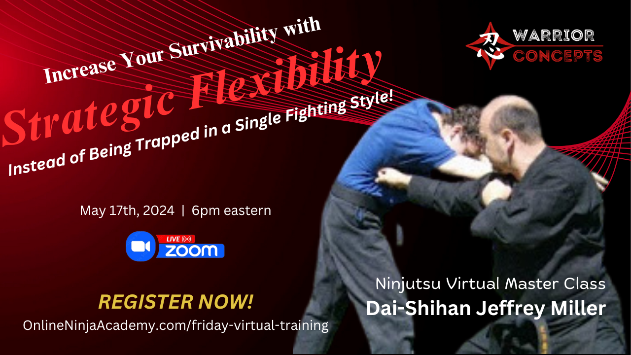 Here's the link to register for this week's virtual Ninjutsu class from my dojo via Zoom, tonight at 6pm eastern, where I'll be teaching on what this looks like in an actual engagement with an attacker!