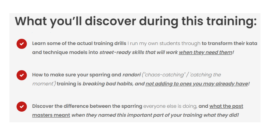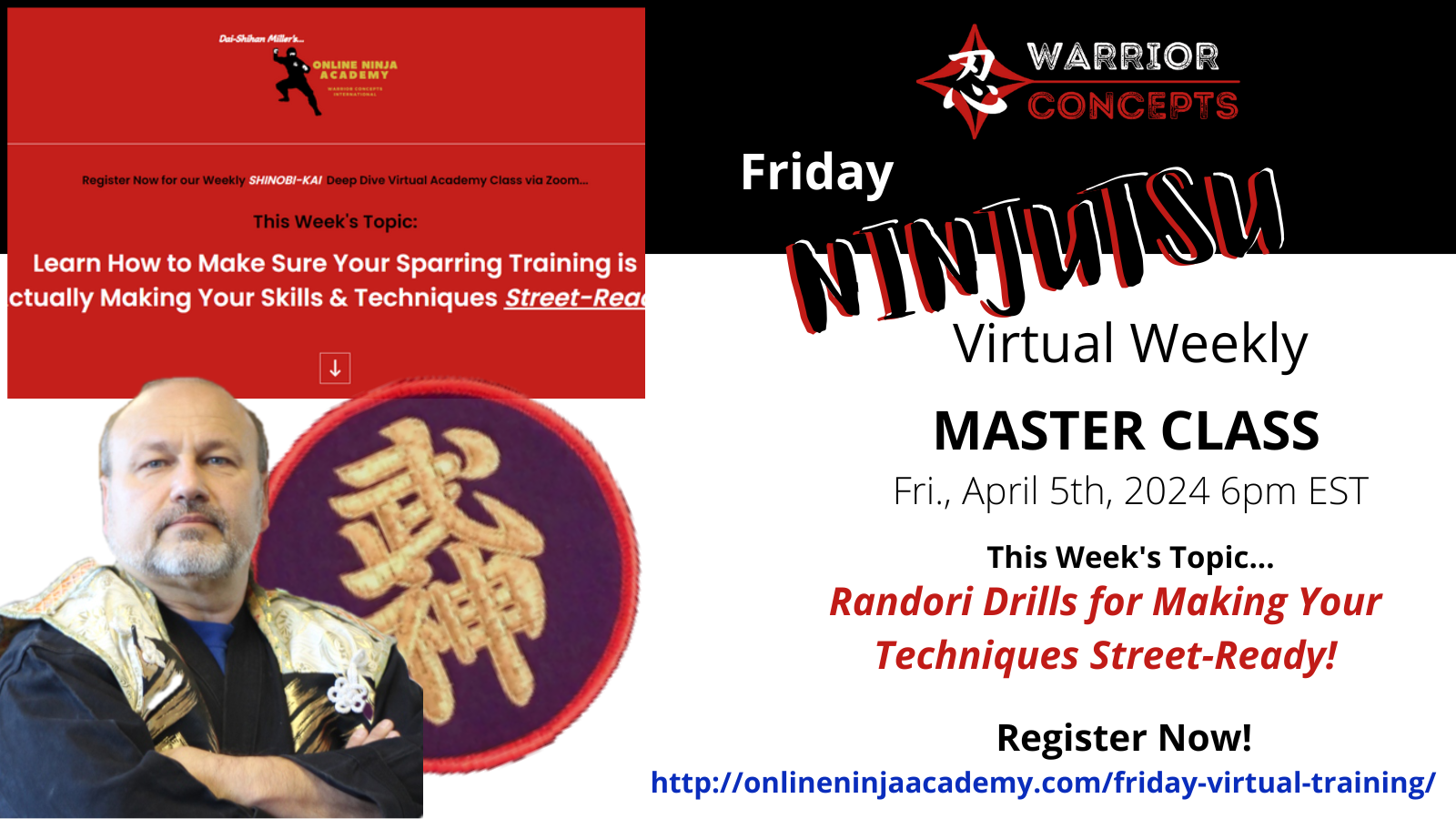 To take this further, we'll be focusing on physical examples of these tactics during this week's Virtual Class... broadcast live via Zoom from my dojo at 6pm eastern tomorrow evening.