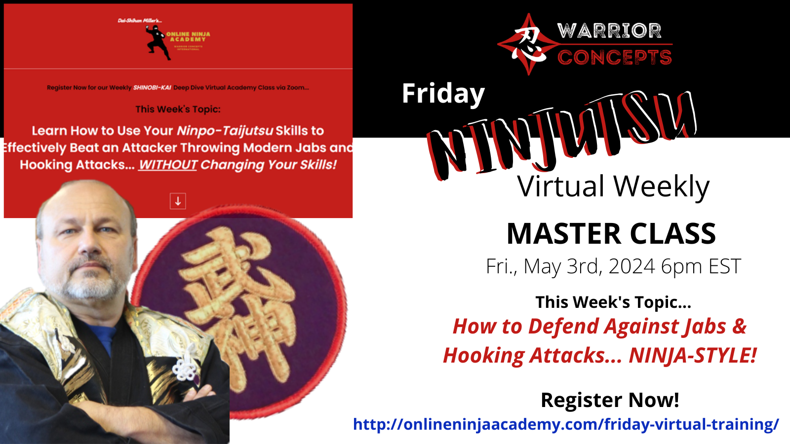 week's Friday Virtual Masterclass... broadcast live via Zoom from my dojo at 6pm eastern tomorrow evening.