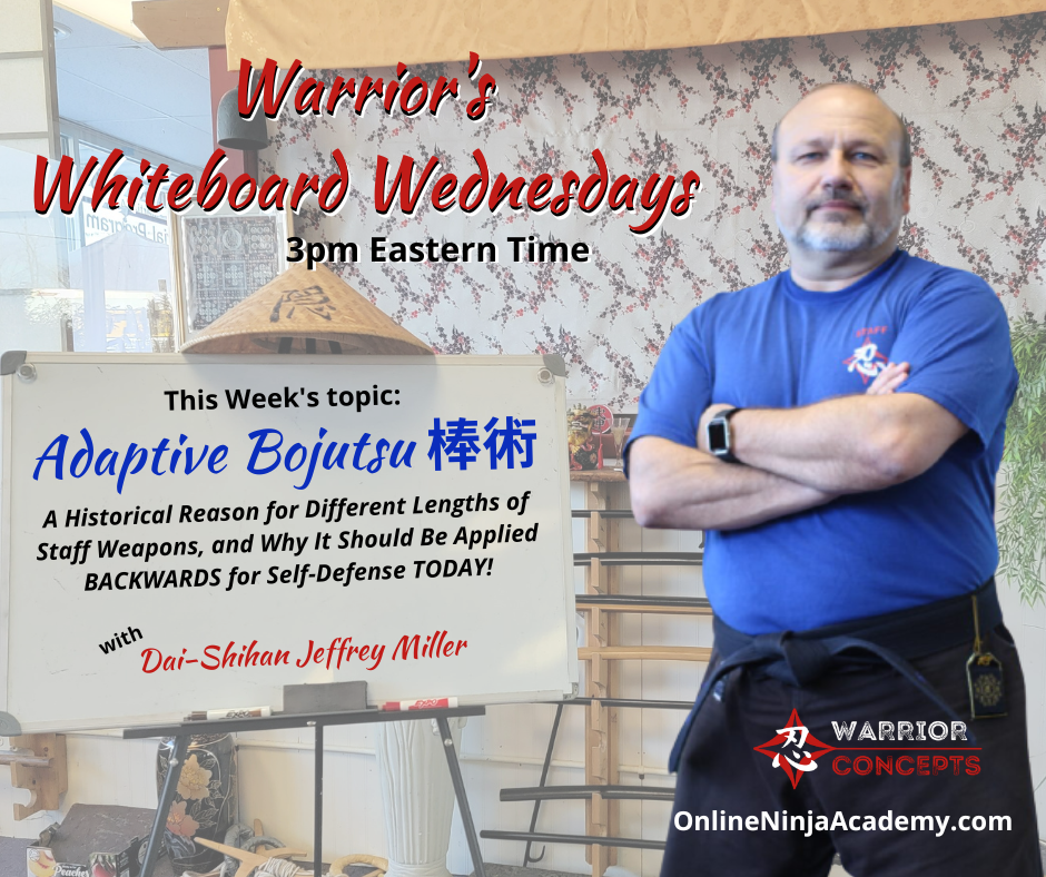 episode of Warrior's Whiteboard Wednesday where I focused on understanding one possible reason that the different staff weapon lengths were developed, as well as using that same Master's logic for our training today: https://youtube.com/live/SZfZKMuOEn0