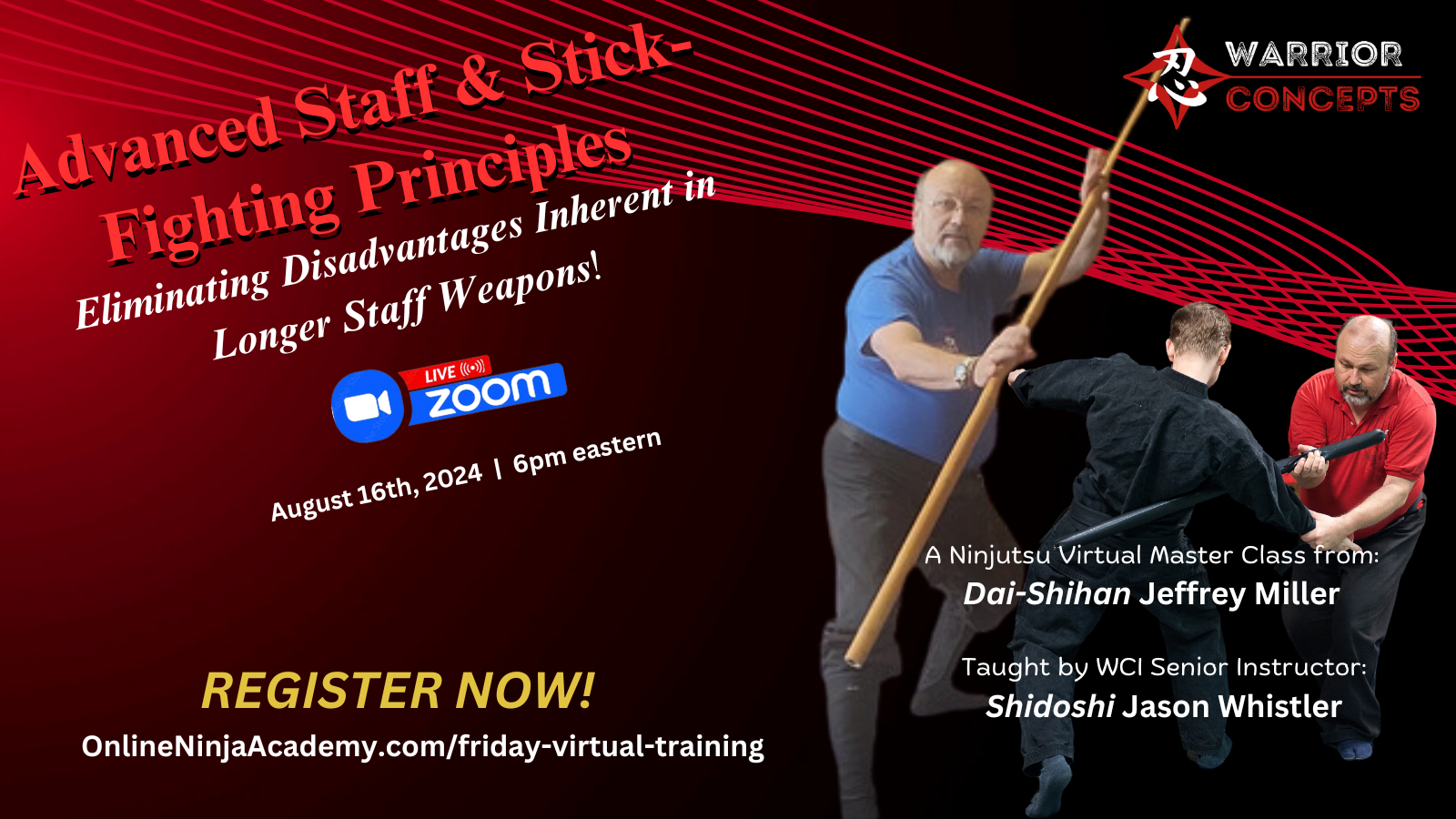 If you already registered for this week's Master Class, then Shidoshi Whistler will see you during the training. If you haven't registered and don't want to miss out, you can do that by clicking on the pic, or on the link below it to lock in your spot now (remember, there are only 20 available, and several