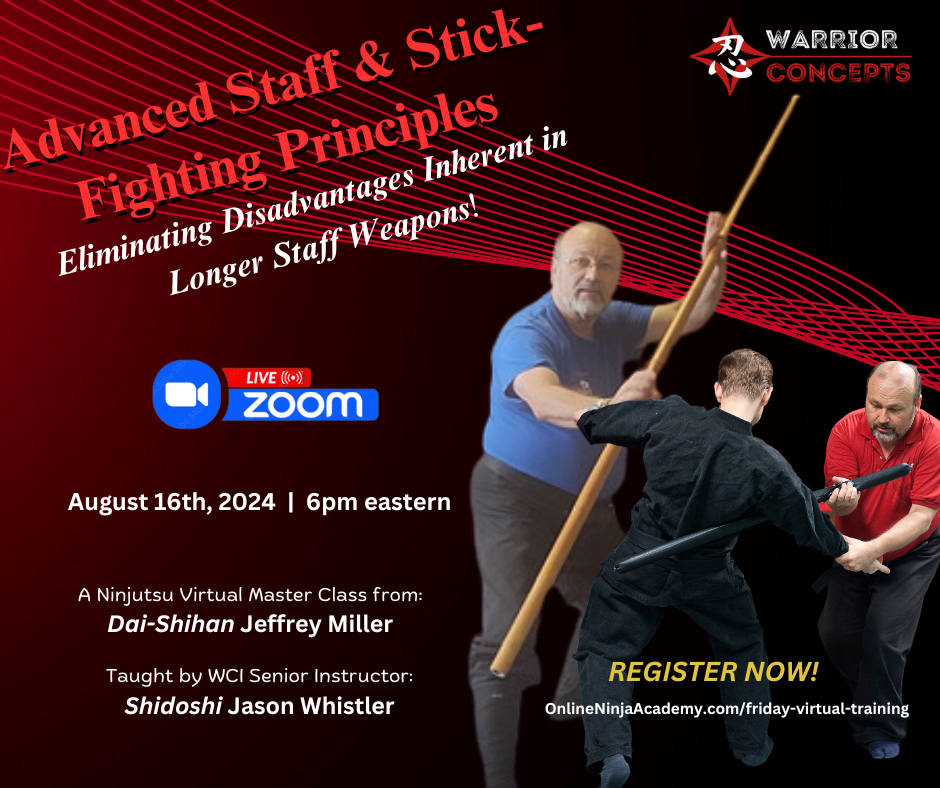 Here's the link to register for this week's virtual Ninjutsu class from my dojo via Zoom, Tonight at 6pm eastern, where I'll be teaching techniques based on several of the lessons taught during this week's Warrior's Whiteboard Wednesday, and how it increases your chances of surviving in an actual engagement with a real-world attacker!