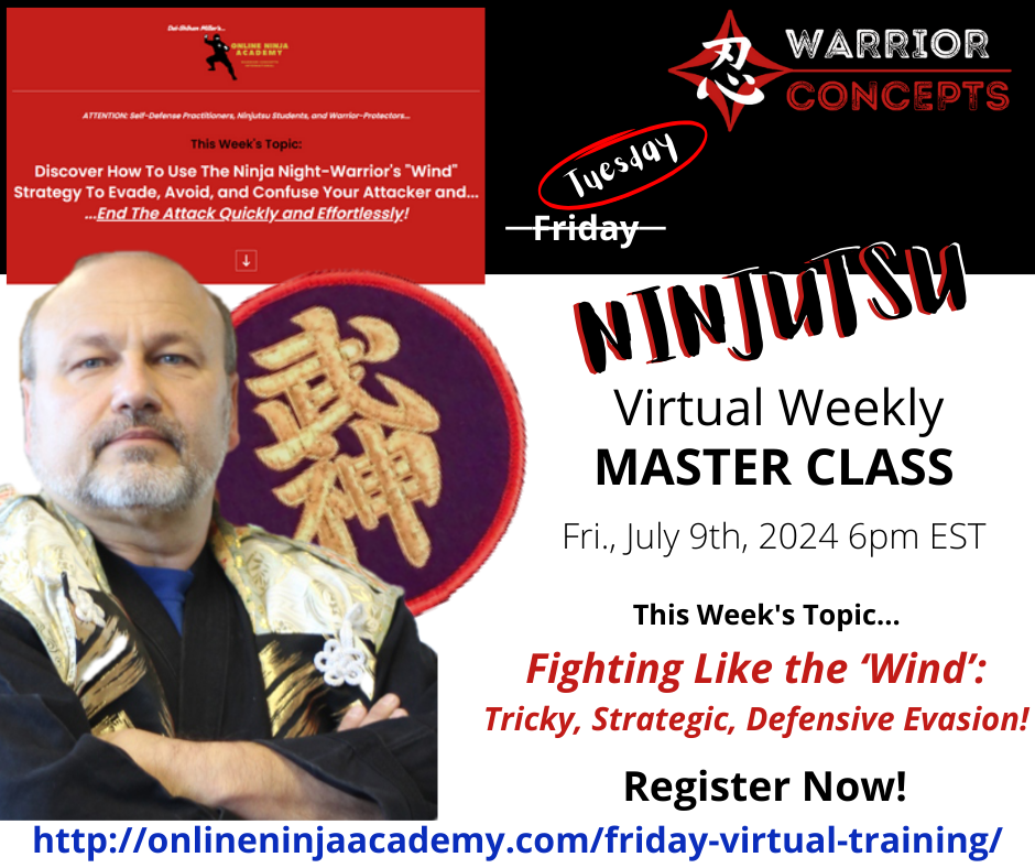 Here's the link to register for this virtual Ninjutsu class from my dojo via Zoom, tonight at 6pm eastern, where I'll be teaching several