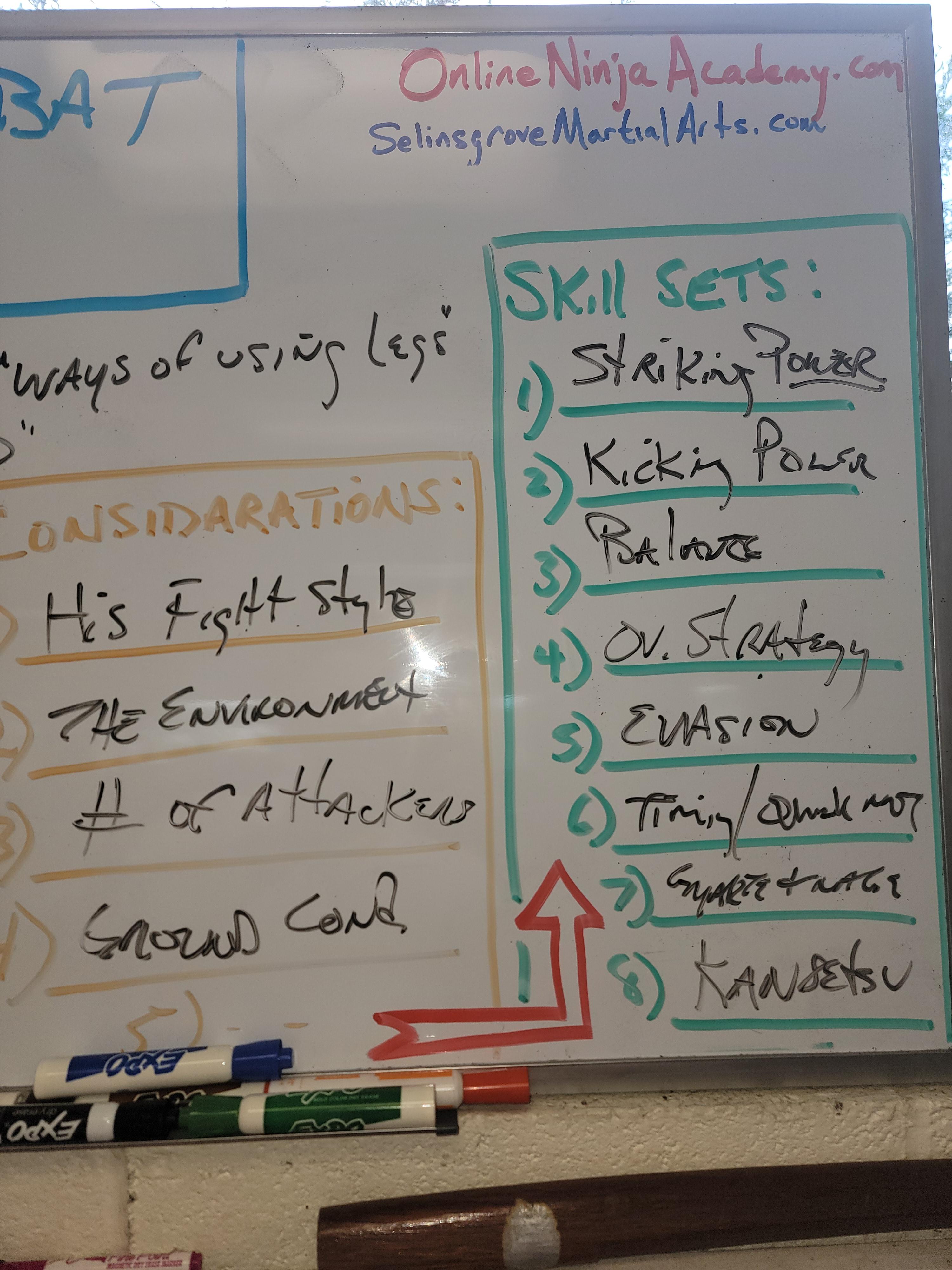 Whiteboard Wednesday was on "Strategic Combat Footwork," where I covered different footwork patterns for different situations and combat considerations (including some of your other skills affected by the quality of your footwork and how you use your legs -> check out part of the board):