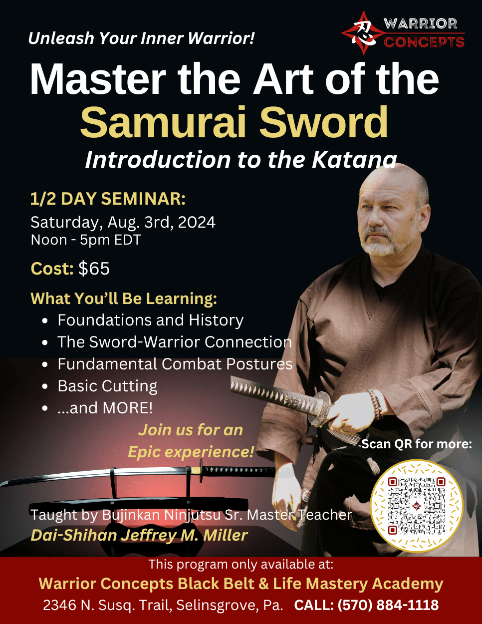 Time is running out to secure your spot for our Introduction to the Samurai Sword Seminar happening TODAY from Noon to 5pm eastern time!