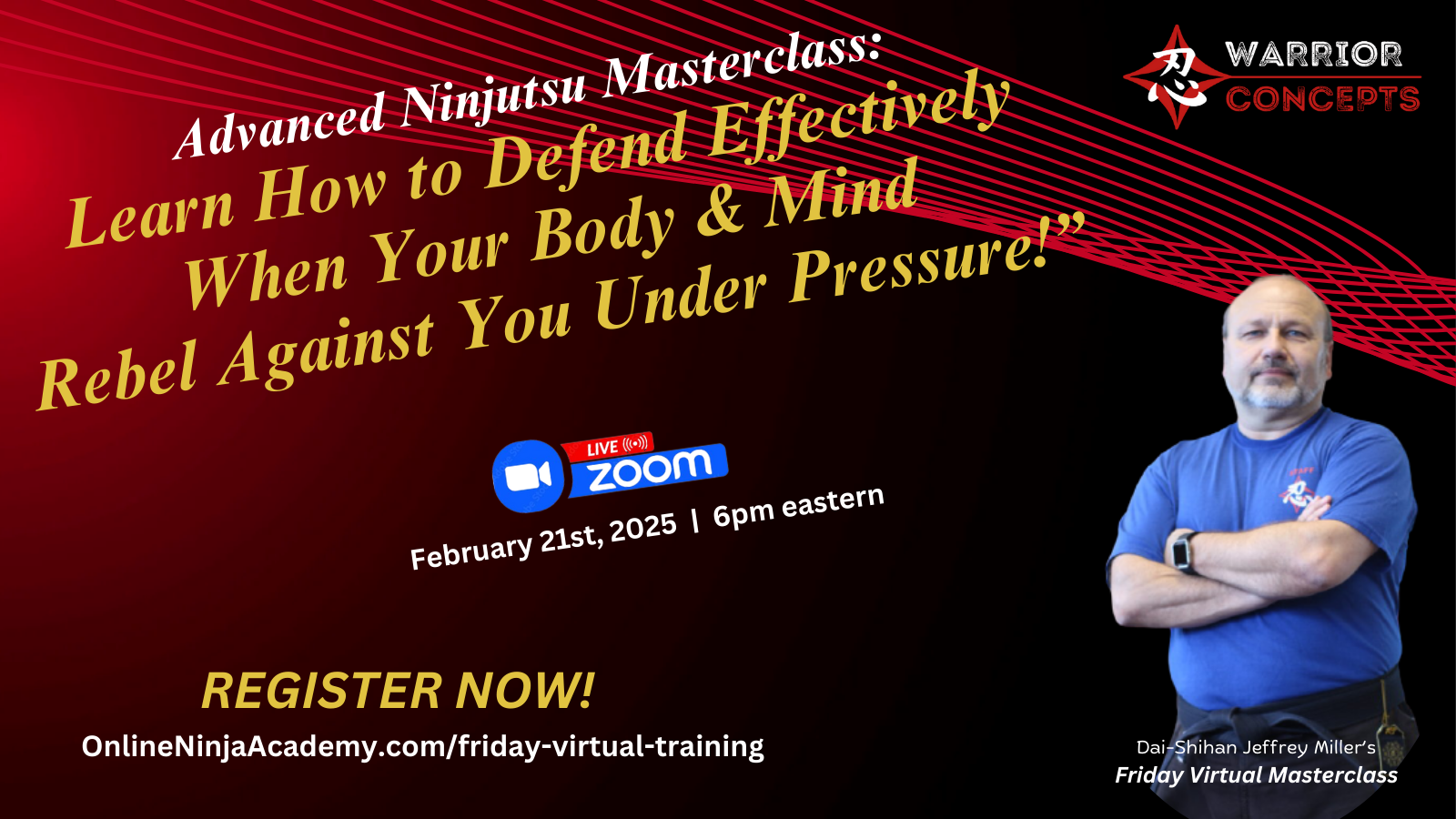 THIS IS IT... the doors are closing in about and hour (4:30pm eastern), but there's still time to register for today's virtual Ninjutsu self-defense class