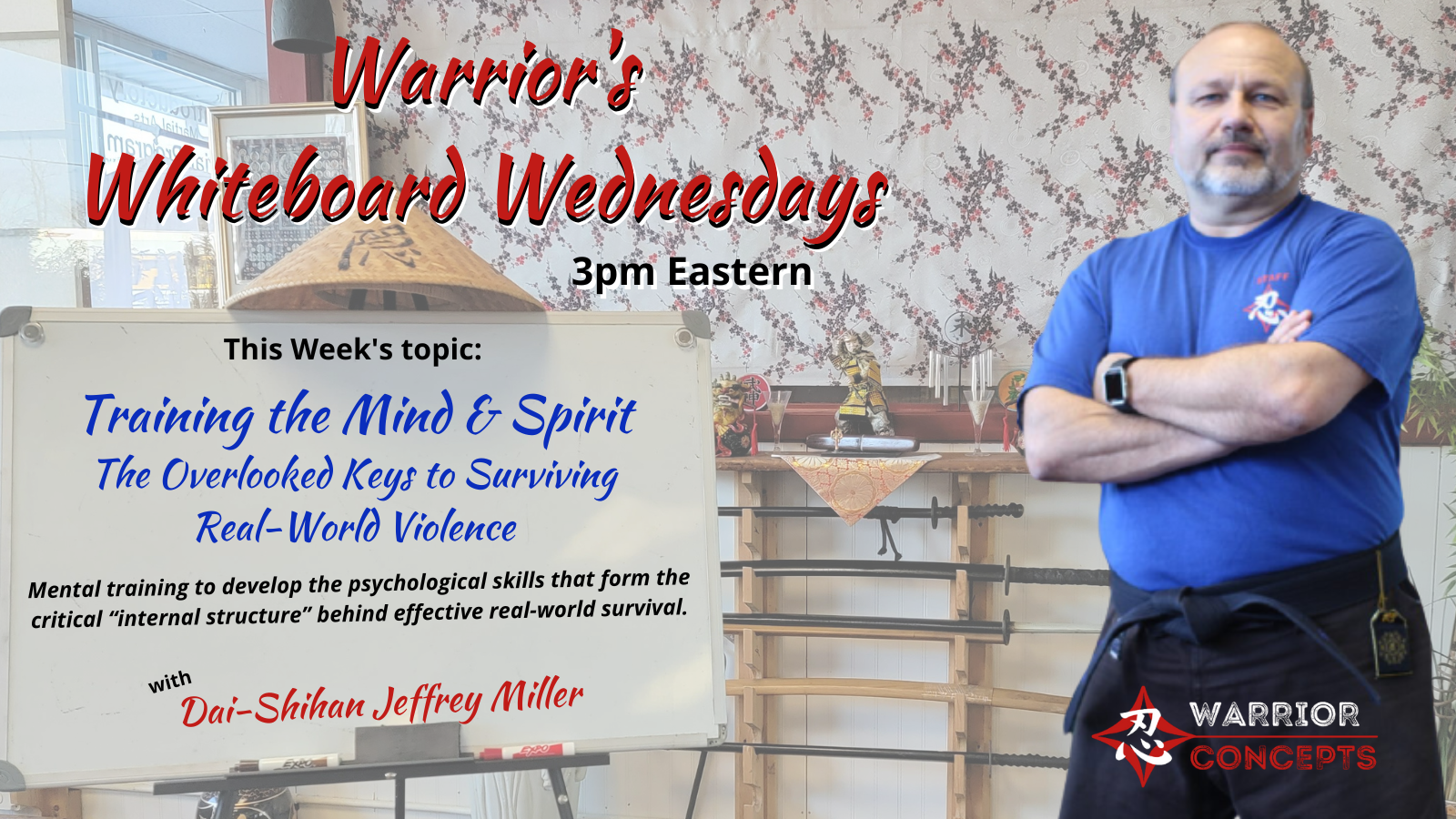 Today on Warrior’s Whiteboard Wednesday, we’re exploring the some of the mental training critical for survival in a real-world self-protection and survival attack scenario, but woefully missing from most self-defense and martial arts training.