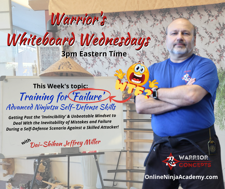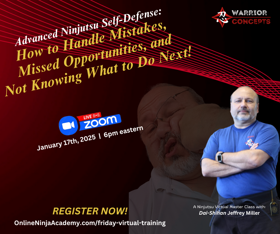Here's the link to register for this week's virtual Ninjutsu class from my dojo via Zoom, Tonight, January 17th at 6pm eastern, where I'll be several drills and failure scenarios and what some of the skills you could use in