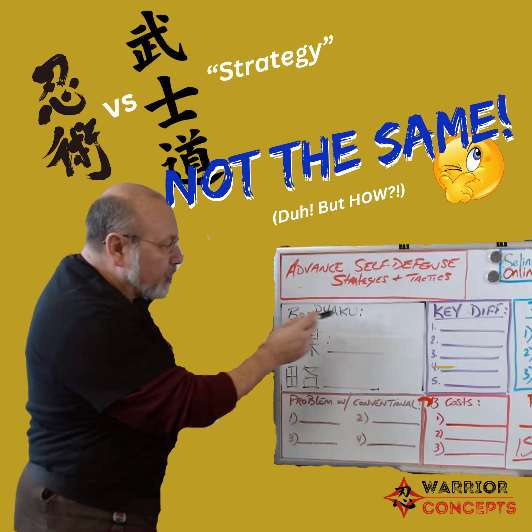 Bo-Ryaku ('unconventional strategies and tactics') come into play, and what makes it different from the coventional, toe-to-toe, brute-force approach within Bushido. It's also the theme for this week's training - from the KUDEN! podcast all the way through the Ninpo-Taijutsu classes... and also what we focused on during yesterday's Warrior's Whiteboard Wednesday training.