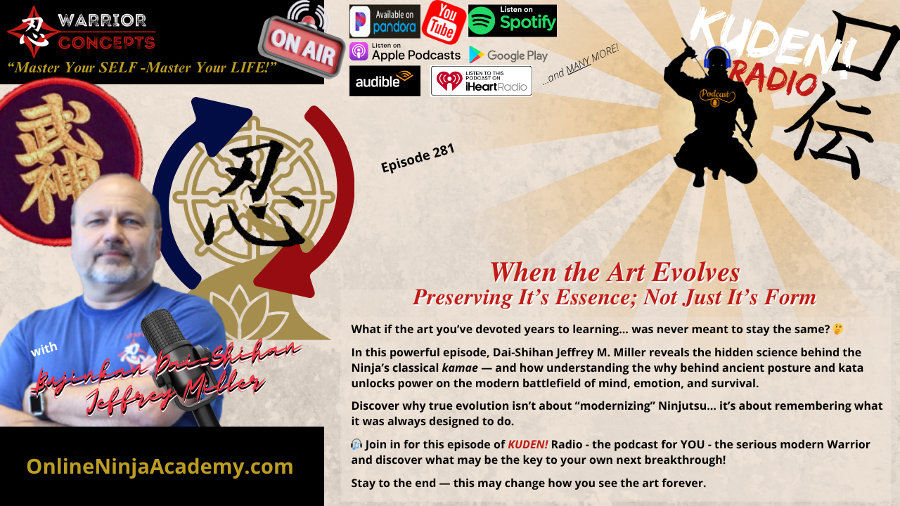 These insights come from the KUDEN! Radio episode on Preserving Essence - Not Just Form, and this week’s Warrior’s Whiteboard Wednesday, where we explored “The Evolution of the Ninja’s Tai-Sabaki” as we progress through the different stages of development.