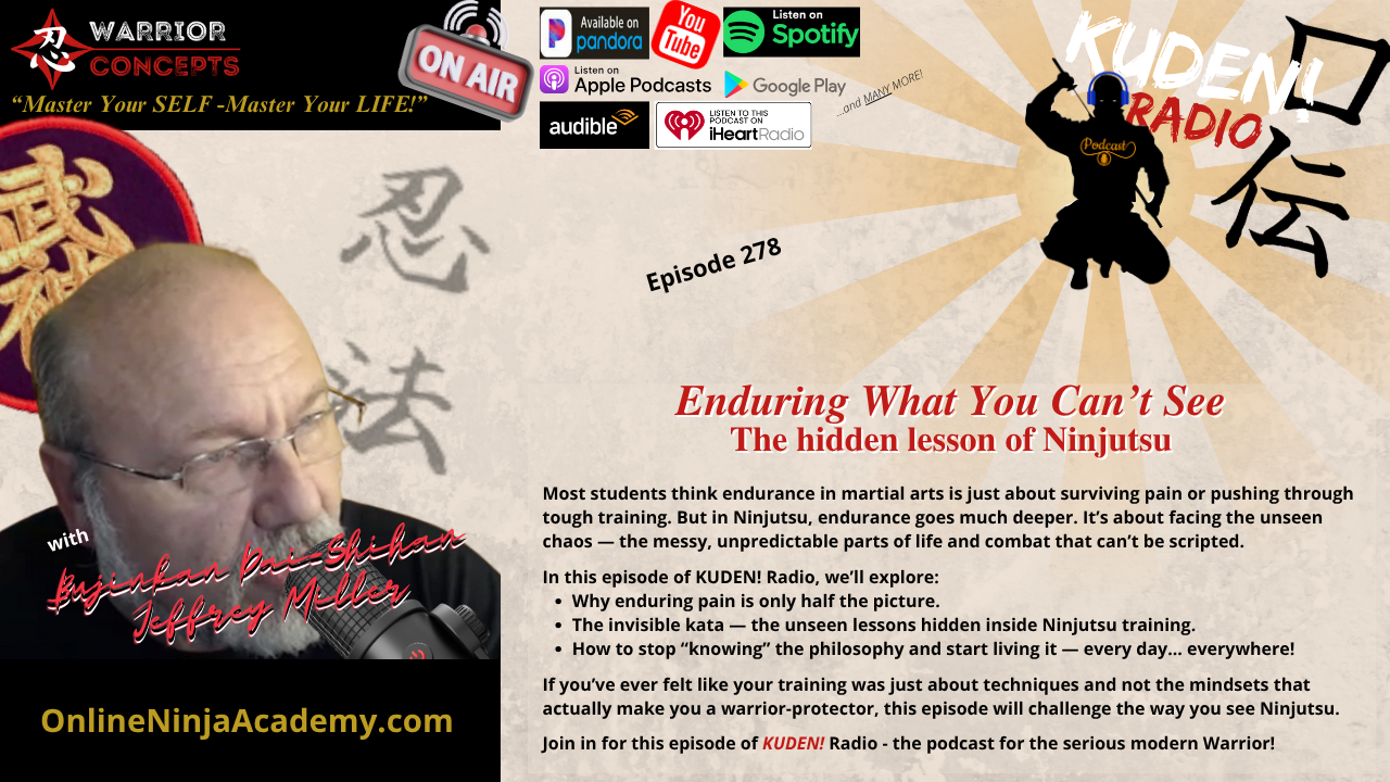 Each week, I release a new episode breaking down the mindset, strategies, and forgotten lessons of real Ninjutsu training. You can subscribe for notifications and listen anytime right here: https://onlineninjaacademy.com/kudenpodcast